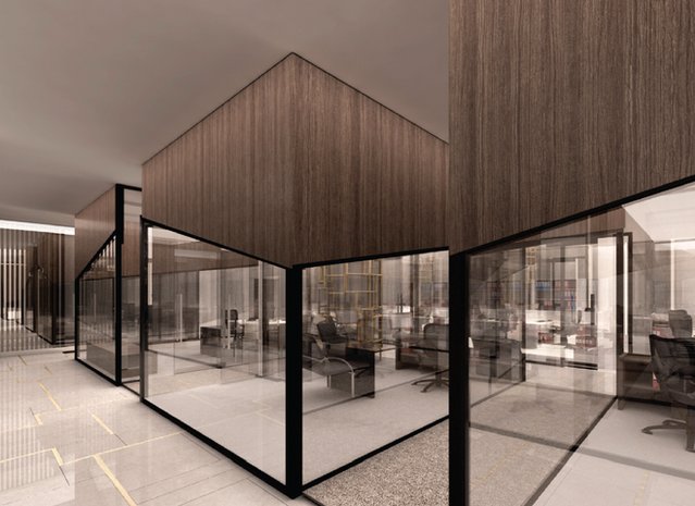 The aim was to design a private showroom/office for Charmaleena Riyadh. Inspired by their jewellery and their brand. we divided the space into two part, the public one is the display and customer showing area. The second is the working space for the designer and the team. The design reflected abstract influence of the Saudi High-End Brand.
