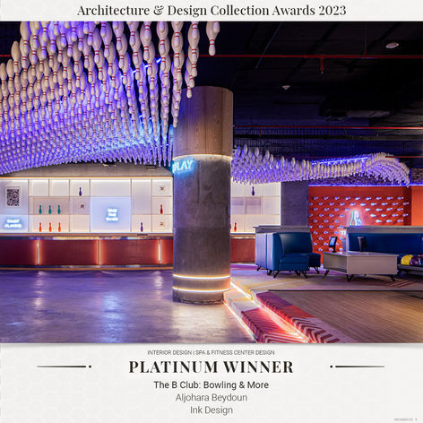 The design concept reflects a fusion ofmodern luxury and retro charm. It incorporateselements that pay homage to classic bowlingalley aesthetics while integrating sleek,contemporary design elements. The vibrantcolors, custom lighting, and bold patternscreate a dynamic and visually engagingspace. The design carefully balances spaciousgameplay areas with strategically placed loungezones, creating a vibrant social atmosphere.